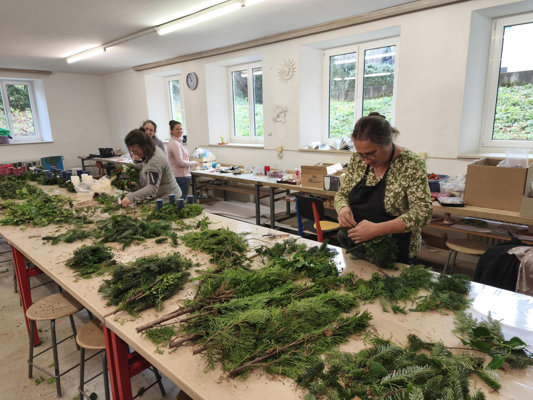 Der morgige traditionelle Ottilianer Adventsmarkt hat schon diese Woche für große Betriebsamkeit gesorgt. Über viele Stunden haben Mitglieder der Ottilianer Eltern e.V. mit großem Engagement über 80 Kränze gebunden, die dann zum Verkauf stehen.