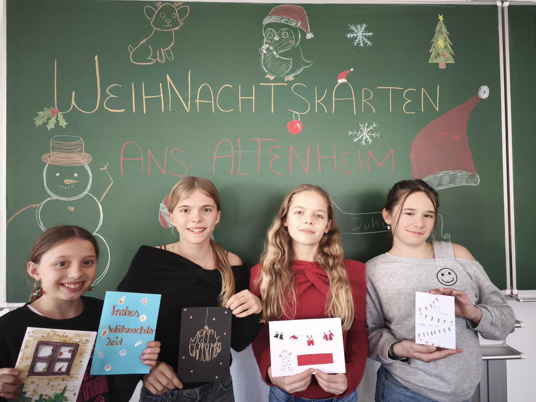 Dies kann über liebevoll gestaltete Weihnachtskarten geschehen, die Menschen im Altersheim St. Agnes in Mering erreichen werden. An einem gut gelaunten Nachmittag mit entsprechendem Proviant (Plätzchen und Lebkuchen) und typischer Musik („White Christmas“) gestalteten vorwiegend jüngere Schülerinnen und Schüler insgesamt fast 90 Karten und versahen sie mit freundlichen Worten.