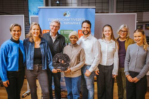 Im Mittelpunkt des Abends stand der Bericht über die Reise nach Newala, an der im November rund 30 Menschen aus dem Landkreis teilgenommen hatten. Unter ihnen waren auch neun Elftklässler/innen, von denen Katharina Radtke und Laura Udluft ihre Begegnung mit der Abbey Secondary School schilderten: ein gemeinsamer Nachmittag mit Tanz, Gitarrenmusik und Gesprächen. Die tansanischen Gastgeber führten tansanische Tänze vor, die Gäste den „Macarena“-Tanz, bei dem alle mitmachten. Die deutschen Schüler präsentierten anschließend eine Aufführung des Theaterstücks „Schneewittchen“, das ebenfalls gut ankam.